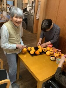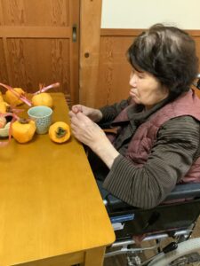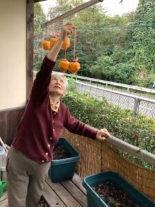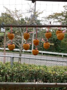 今年は「柿」が生り年のようですね。しょうちゃんの家では干し柿を作りました。皆さん昔はご自宅で作られていたようで、手際よく下ごしらえをして、干して下さいました。「熟する頃を狙って猿が取りに来るで気をつけなよ」とアドバイスも頂きました。