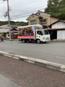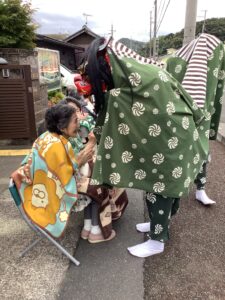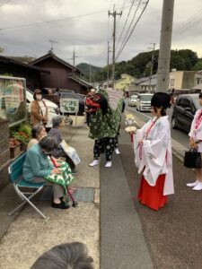 高倉神社秋祭りがあり、お神輿が余部の家前の道路