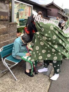 大きな獅子も近くまで来て頂き、頭をかじってもら