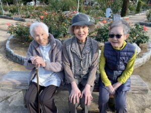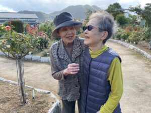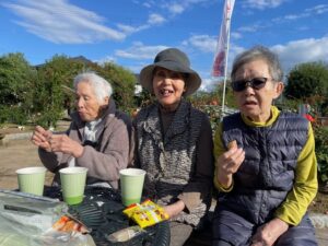 先日、綾部市のバラ園に行ってきました。 天候にも恵まれ、青空の下でおやつを頂きながら見物しました。