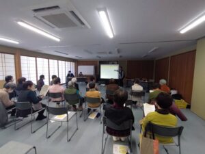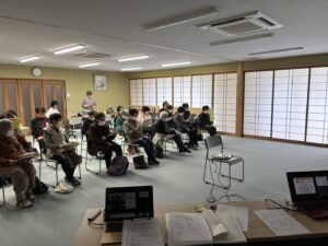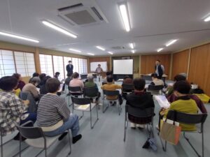 12月11日におはようカフェにお邪魔して、キャラバンメイトとして舞鶴市高齢者支援課、城南包括支援センター、中島で認知症サポーター養成講座を開催させて頂きました。22名のカフェ参加者に、講話・寸劇を交えてお伝えしてきました。これから、自分たちも認知症になるかもしれないということを前提にしっかりとお話を聞いていただけました。ありがとうございました。