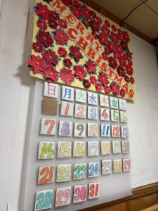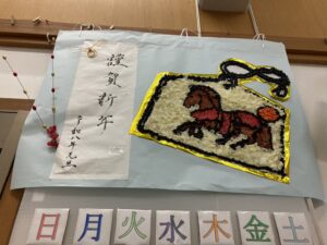 写真は、12月と1月の壁飾りです。とても素敵に仕上がりました。