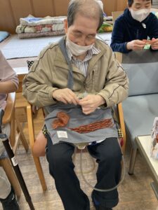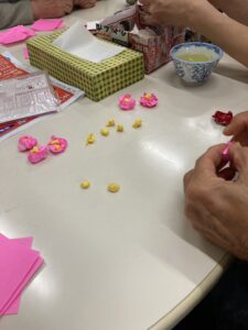 「こんなんできんー!」「むずかしいー!」とおっしゃりながらも、他利用者様と会話を楽しまれながら一緒に作って下さいます。