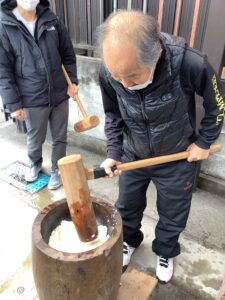 良く晴れた日の1月吉日に、恒例の餅つき大会が