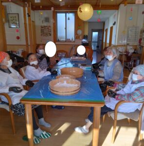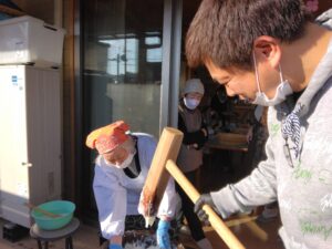 1月はお餅つき・どんど焼きを行いました