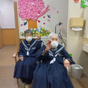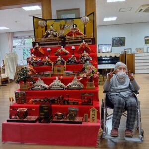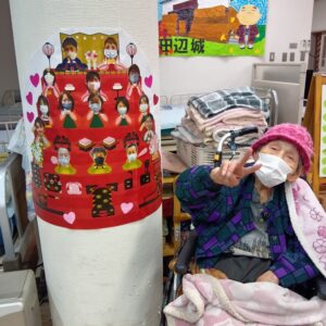 デイホールの柱には職員ver.のお雛様を♡♡