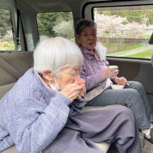 おやつを持ち出し、満開の桜を見ながら頂きました(*´▽`*)