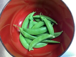 スナップエンドウが沢山実り、収穫の時期になりました。収穫したスナップエンドウは