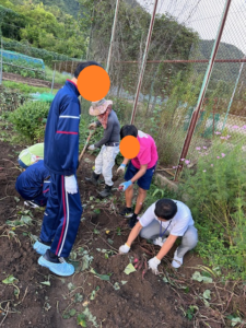 そしてこの畑活動の目的の一つでもある、「世代間交流」「福祉に触れ身近に感じてもらう」「高齢者に対する理解の増進」などの意味も含んでオファーをし、協力を得ることができました!