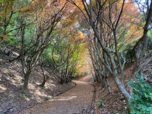 といっても、石碑広場に続く山道は落ち葉がさらに景色を彩ってくれるので、まるで絵本か絵画の世界に来たような気持になります。