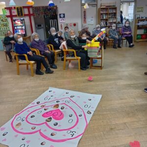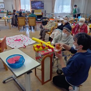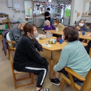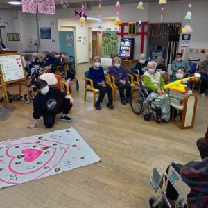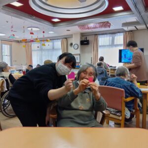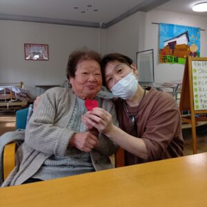 お気に入りの職員めがけてハートを飛ばす利用者さん。