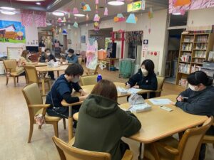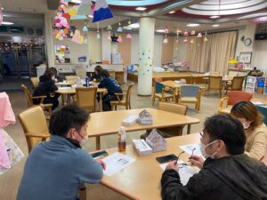 2月の業務後のある日、やすらぎデイで災害がおこっても業務を継続できるのかという研修を行いました。