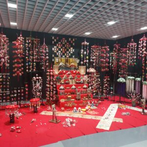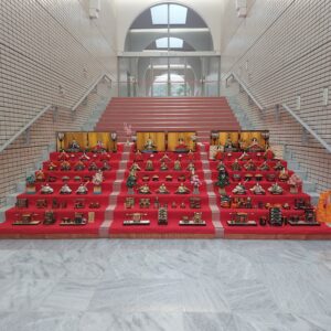 文化会館の吊るしひなと大階段に並べられたひな人形がとてもキレイ♪