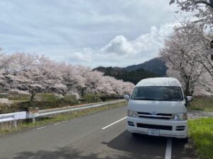 養護老人ホーム安岡園では、車4台を投入してお花見ドライブを観光しました。